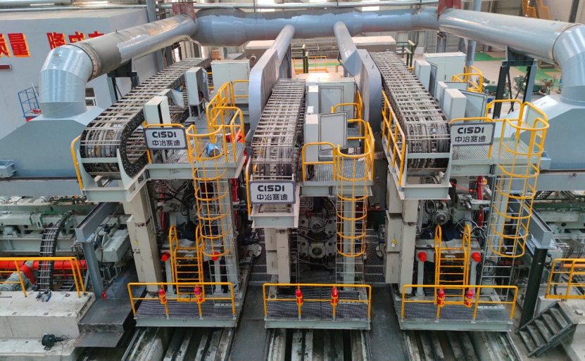 由中冶賽迪提供全線關鍵工藝、裝備及控制技術的首條中國自主化大型萬能重軌、型鋼生產線河北永洋特鋼重軌萬能連軋生產線,打破了萬能軋機工藝及裝備技術長期依賴進口的局面,有效解決了軌道用鋼領域“卡脖子”難題,大大推動了我國軌道用鋼生產工藝及裝備技術進步。